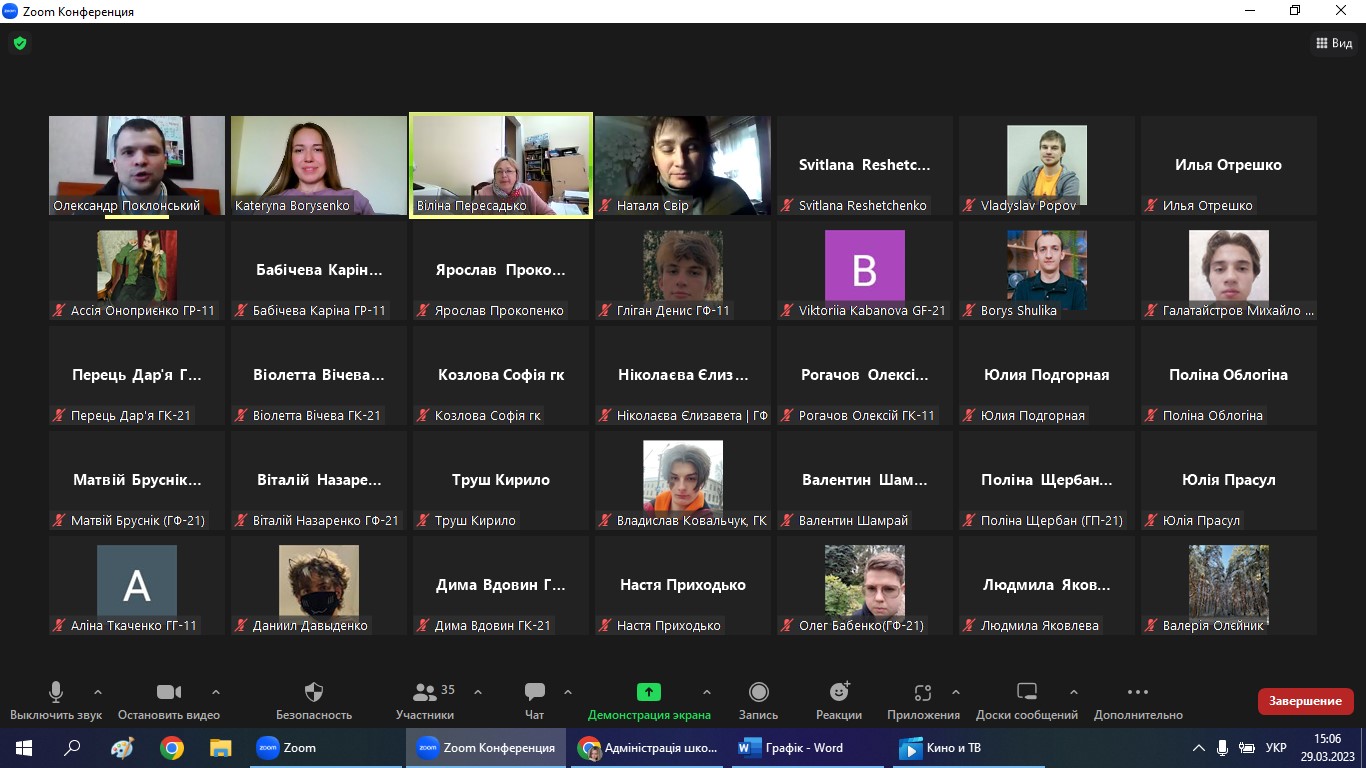 29 березня 2023 року на кафедрі фізичної географії та картографії відбувся профорієнтаційний майстер-клас на загальнокафедральній кураторській годині для студентів-бакалаврів та магістрів, що навчаються на освітньо-професійних програмах спеціальності 106 Географія («Картографія, геоінформатика і кадастр»; «Географія рекреації та туризму»; «Фізична географія, моніторинг і кадастр природних ресурсів»; «Географія»; «Картографія, ГІС і ДЗЗ»), а також спеціальності 014.07 Середня освіта (Географія) («Географія, природознавство та спортивно-туристська робота»; «Географія, Людина і природа та туристська робота»).