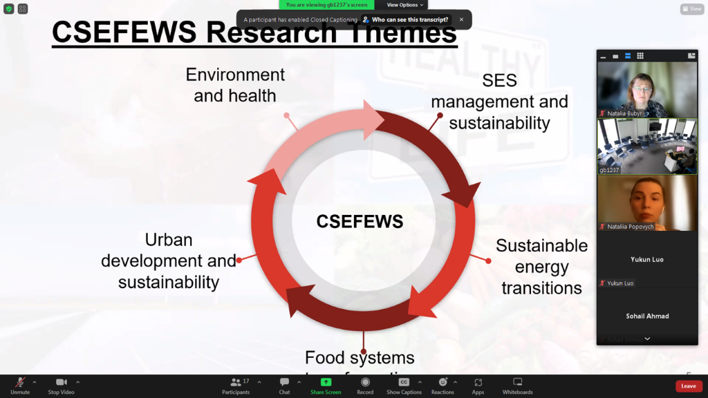 Під час обговорення було вирішено налагоджувати співпрацю між дослідницькими групами кафедри фізичної географії та картографії і CSEFEWS RESEARCH GROUP, сформулювали основні тематичні напрями майбутньої взаємодії, серед яких виділяються урбанізація та сталий розвиток у післявоєнній Україні, оптимізація землекористування на регіональному рівні тощо.