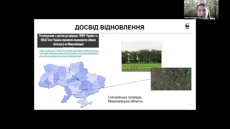 Студенти магістратури разом із викладачами кафедри долучились до роботи воркшопу «Відновлення лісосмуг після бойових дій: спільні рішення для громад», що був організований 24 квітня в дистанційному форматі організаціями WWF-Україна та The HALO Trust в Україні.
