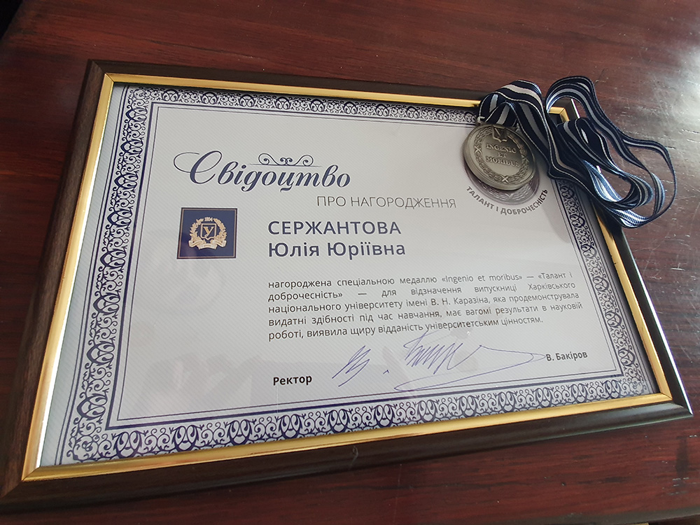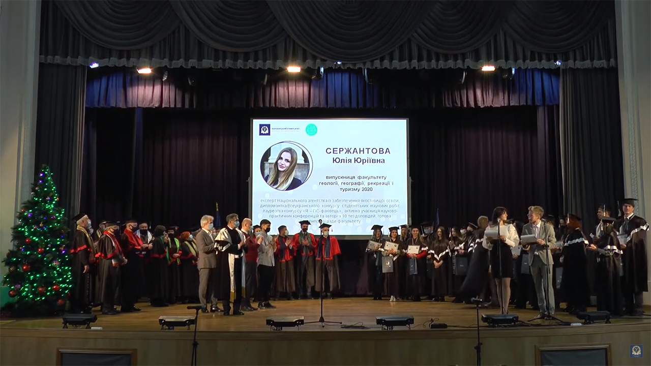 Кращою студенткою факультету геології, географії, рекреації і туризму 2020 р. визнано Юлію Сержантову, студентку групи ГГ-61 кафедри фізичної географії та картографії. Юлія Сержантова має високі успіхи у навчанні, є відмінницею навчання. З 2019 року є експертом Національного агентства із забезпечення якості вищої освіти, лауреат конкурсу «Я – ГІС-фахівець», активна учасниця науково-практичних конференцій та автор більше 10 тез доповідей, голова студентської ради факультету. Юлія була нагороджена медаллю та грамотою університету «Талант та доброчесність».