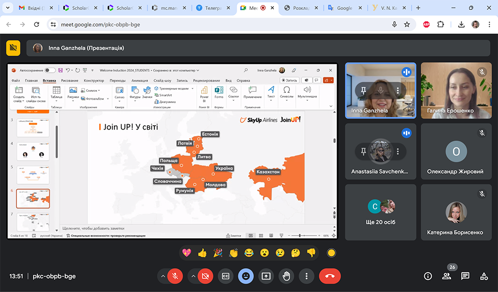 Бакалаври і магістри спеціальності 106 Географія (освітньо-професійні програми: «Картографія, геоінформатика і кадастр»; «Географія рекреації та туризму»; «Фізична географія, моніторинг і кадастр природних ресурсів»; «Географія»; «Картографія, ГІС і ДЗЗ»), а також спеціальності 014.07 Середня освіта (Географія) (ОПП: «Географія, природознавство та спортивно-туристська робота»; «Географія, Людина і природа та туристська робота», «Географія. Природознавство. Економіка. Туристська робота»), викладачі й куратори груп долучилися до зустрічі з представниками відомої туристичної компанії JoinUp – багатопрофільного українського туроператора з головним офісом у Києві. JoinUp – одна з найбільших туристичних компаній України. Потенційні роботодавці провели профорієнтаційну зустріч для зацікавлених у міжнародному та вітчизняному туризмі та тих, хто мріє отримати професійний досвід у цій галузі.