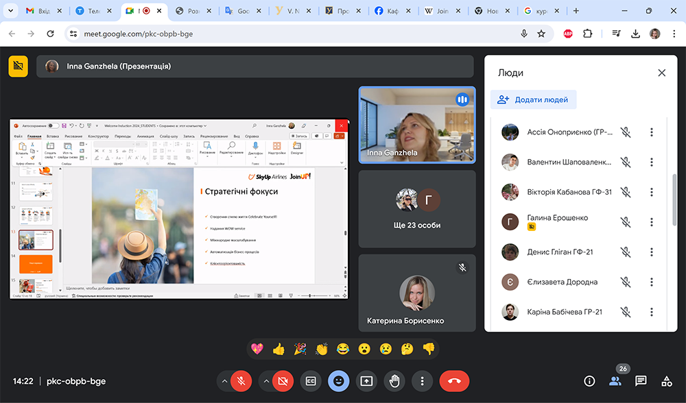 Вдячні представникам туристичної компанії JoinUp за презентацію, можливості отримати безцінний досвід для студентів і пропозицію приєднатися до команди експертів туристичного бізнесу та вдячні за організацію заходу студентській раді ФГГРТ!
