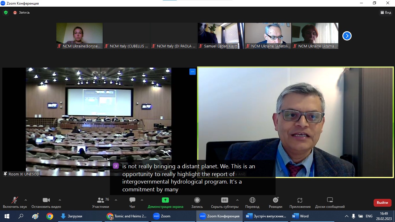 27-28 лютого 2023 року відбулося 62-е засідання Бюро Міжурядової гідрологічної програми ЮНЕСКО у якому прийняла участь у якості делегата-науковця від Каразінського університету Катерина БОРИСЕНКО. Захід проходив у гібридному форматі у штаб-квартирі ЮНЕСКО (м. Париж). У засіданні взяли участь більше 140 учасників з різних країни світу, захід проводився англійською та французькою мовами.
