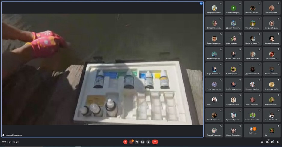 Під час гідрологічних досліджень на природних водних об’єктах, керівники практики (доц. Борисенко К.Б., ст. викл. Попов В.С.) віртуально ознайомили та навчили використовуючи гідрологічні прилади (водний термометр, гідрологічні поплавки, білий диск для визначення її прозорості, шкала колірності, ехолот-картоплотер Lowrance Elite 7 ti, гідрологічні рейки, гідрологічна вертушка, аналітична лабораторія Tetra Water Test Set), складати гідрологічні характеристики водних об’єктів за маршрутом та встановлювати динаміку гідрологічних процесів. Використовуючи аналітичну лабораторію Tetra Water Test Set проведене синхронне дослідження, а саме гідрологічні пости на природних водних об’єктів біля р. Івани та самої річки. Також Студенти були ознайомлені з правилами безпеки під час польових видів практик. Досліджено територію проходження практики шляхом дешифрування космічних знімків високої роздільної здатності зі супутника. Досліджено заплави за допомогою знімків з квадрокоптеру DJI Mavic 2 Pro, віртуально продемонстровано роботу ехолоту-картплотеру Lowrance Elite 7 ti на річці.