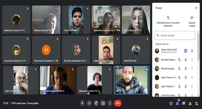 Згідно з навчальним планом спеціальності 106 «Географія», 014.07 «Середня освіта (Географія)» навчання за освітньо-професійною програмою «Картографія, геоінформатика і кадастр», «Фізична географія, моніторинг і кадастр природних ресурсів», «Географія рекреації та туризму», «Географія, природознавство та спортивно-туристська робота», «Географія, економіка та краєзнавчо-туристична робота», «Географія соціальна та економічна» навчальна природничо-наукова практика проводилася у дистанційному режимі на платформах Zoom, Google Meet, за допомогою месенджерів Viber, Telegram на кафедрі фізичної географії та картографії, кафедрі соціально-економічної географії і регіонознавства факультету геології, географії, рекреації і туризму з 13.06.22 по 17.07.22 року.