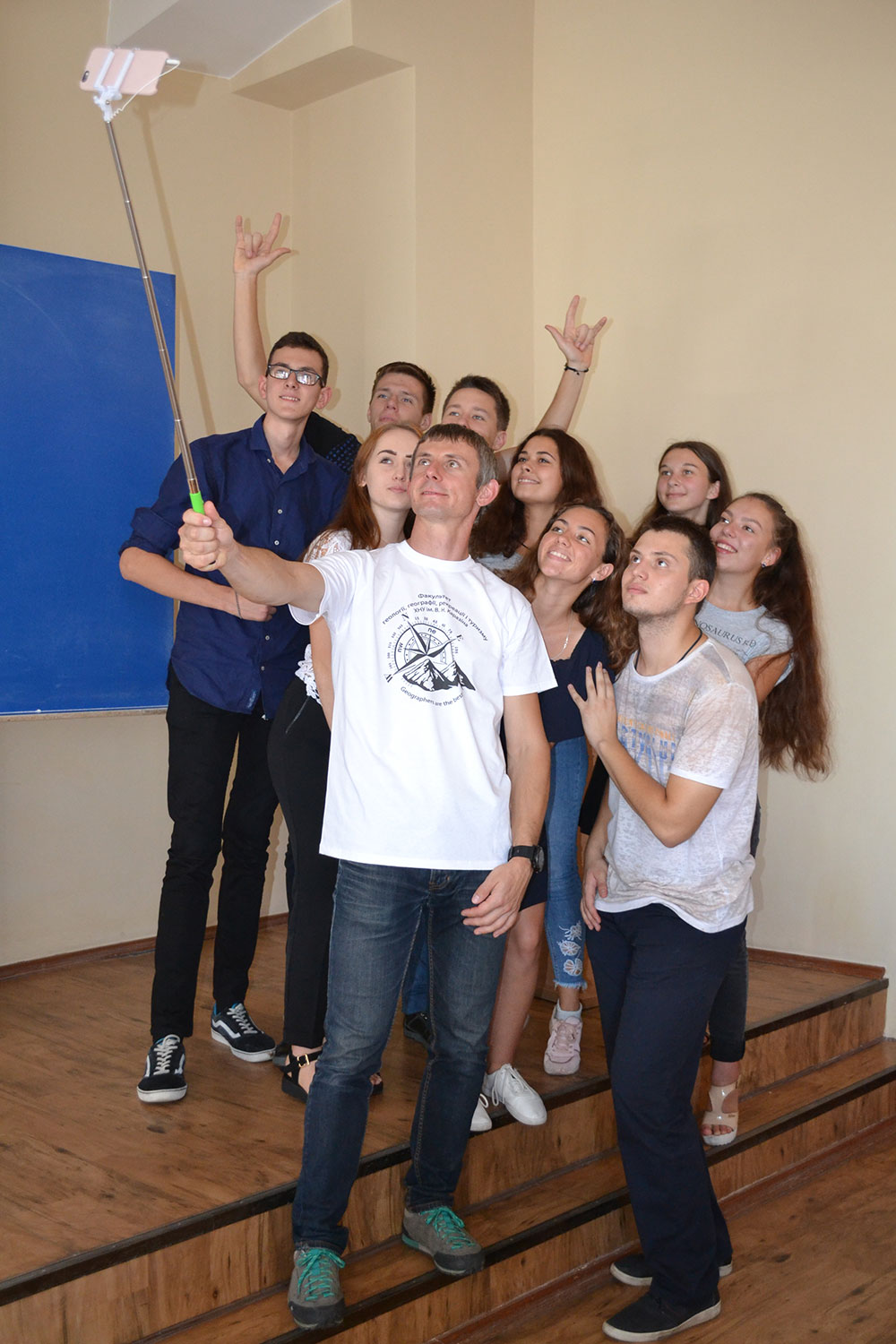 Паралельно він тепло і з гордістю згадував свої студентські роки в Університеті, викладачів, одногрупників, практики тощо. Наприкінці зустрічі студентський декан Юлія Сержантова вручила Валентину на згадку сувеніри з емблемою факультету. Футболку він одразу одягнув та пообіцяв, що вона побуває з ним на майбутніх вершинах. Також було організовано фотосесію та автографсесію, в якій взяли участь студенти факультету.