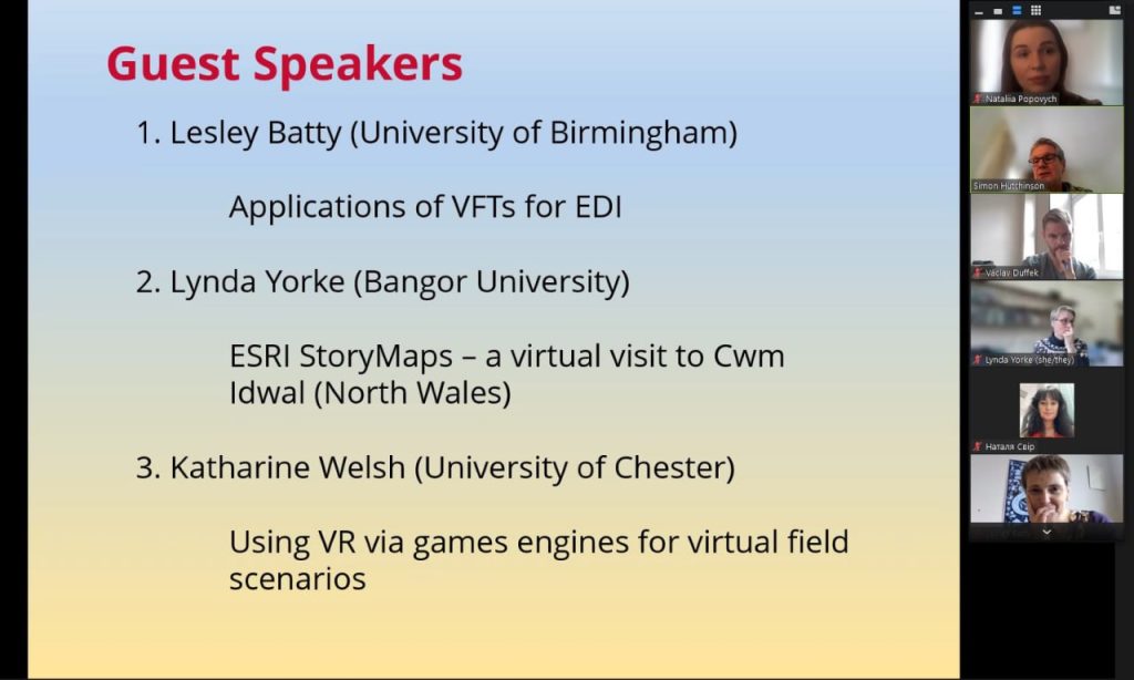 У середу, 15 березня 2023 р., відбувся третій, завершальний майстер-клас зі створення віртуальних екскурсій (virtual field trips). Цього разу до онлайн-заходу, що проводився англійською мовою з синхронним перекладом, долучилося більше 50 учасників: студенти різних освітніх програм бакалаврату і магістратури, аспіранти та викладачі кафедри фізичної географії та картографії.