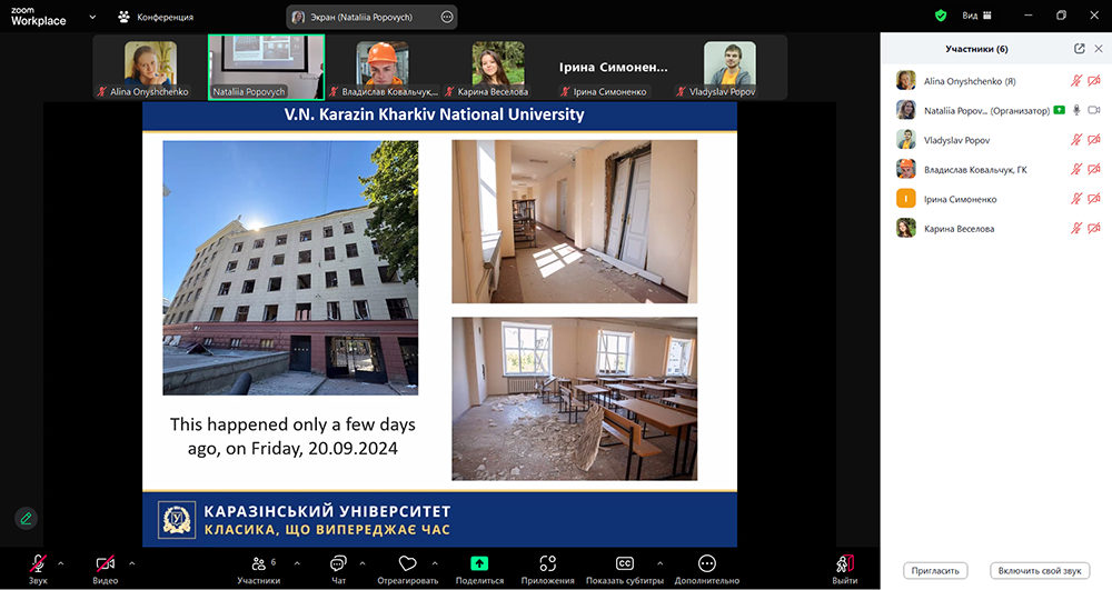 24 вересня 2024 року відбувся семінар, присвячений освітній системі України. У своїй доповіді доц., к. геогр. н. Наталія ПОПОВИЧ зробила акцент на впливі воєнних дій на сучасний стан освітньої системи України, а також розповіла про Каразінський університет і кафедру фізичної географії та картографії. Чеські колеги були шоковані масштабом руйнувань, яких зазнають освітні заклади України у ході повномасштабної війни, і цікавилися тим, як нашій кафедрі вдається підтримувати мотивацію до навчання у студентів.