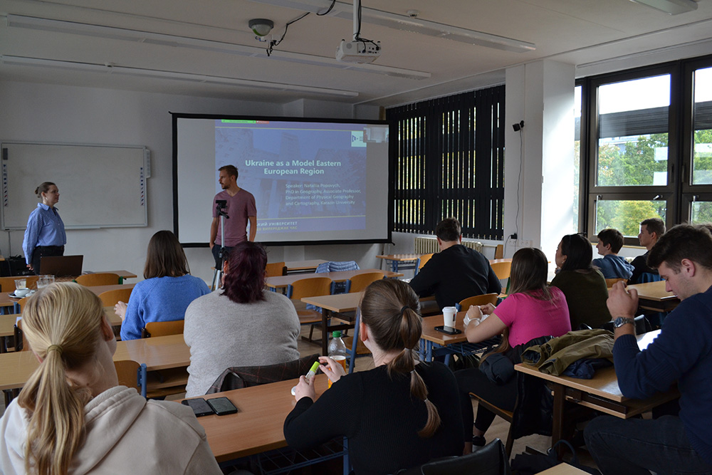 Заходи проводилися у гібридному форматі, тож чеські викладачі і студенти були присутні офлайн, а студенти нашої кафедри - долучилися до семінарів на платформі Zoom. Зокрема, до семінарів доєдналися студенти четвертого курсу бакалаврату ОПП «Фізична географія, моніторинг і кадастр природних ресурсів» і «Картографія, геоінформатика і кадастр», а також студенти першого року магістратури ОПП «Географія», «Картографія, ГІС і ДЗЗ» і «Географія, Людина і природа та туристська робота».