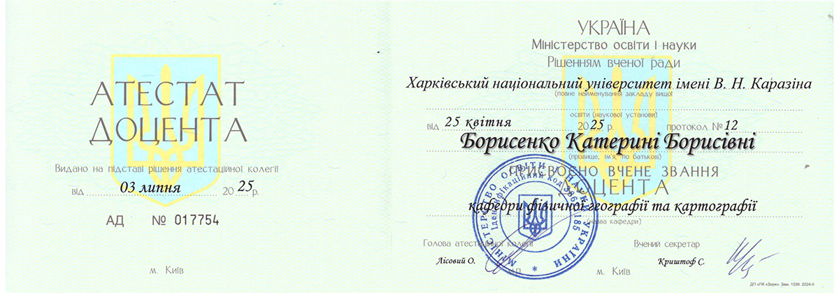 Присудження звання доцента закономірно і справедливо вінчає багаторічну плідну і самовіддану працю Катерини Борисівни, вона – справжній професіонал у своїй сфері, талановитий педагог і чудова Людина, яку щиро поважають як студенти, так і колеги. Увесь професійний шлях Катерини Борисівни в Університеті нерозривно пов’язаний з навчальними польовими практиками, їх організацією і втіленням, під час яких вона із запалом прививає студентам любов до природи й надає найактуальніші професійні знання. Катерина Борисівна також є організатором “експедицій вихідного дня”, віртуозно виконує обов’язки куратора і займається профорієнтаційною роботою, активно бере участь у міжнародній діяльності.