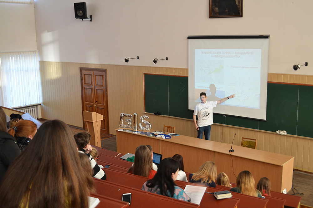 Цього року кафедра фізичної географії та картографії факультету геології, географії, рекреації і туризму вирішила присвятити цій події загальнокафедральну кураторську годину. Безумно, ГІС є незамінним інструментом у роботі сучасного географа. Розвиток ГІС-галузі в світі пов’язаний, в першу чергу, із діяльністю міжнародних корпорацій та компаній, у тому числі – на ринку України. Останніми роками ГІС-проекти активно запроваджуються і в вітчизняному державному секторі. Працевлаштування випускників кафедри в ГІС-галузі стає все більш затребуваним та перспективним. Зважаючи на це, вже 2й рік поспіль кафедрою фізичної географії та картографії здійснюється набір в магістратуру за освітньою програмою «Картографія, геоінформаційні системи і дистанційне зондування Землі», а цього року відкрито освітню програму в бакалавраті – «Картографія, геоінформатика і кадастр». Викладаються ГІС-курси і студентам-географам інших освітніх програм.