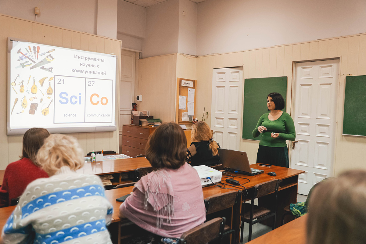 Основним спікером стала начальник відділу реклами та брендінгу університетського Центру зв’язків з громадськістю Гужва Ольга Олексіївна, яка виступила з презентацією “Основні можливості наукових комунікацій для самопрезентації українських науковців у міжнародному просторі”.