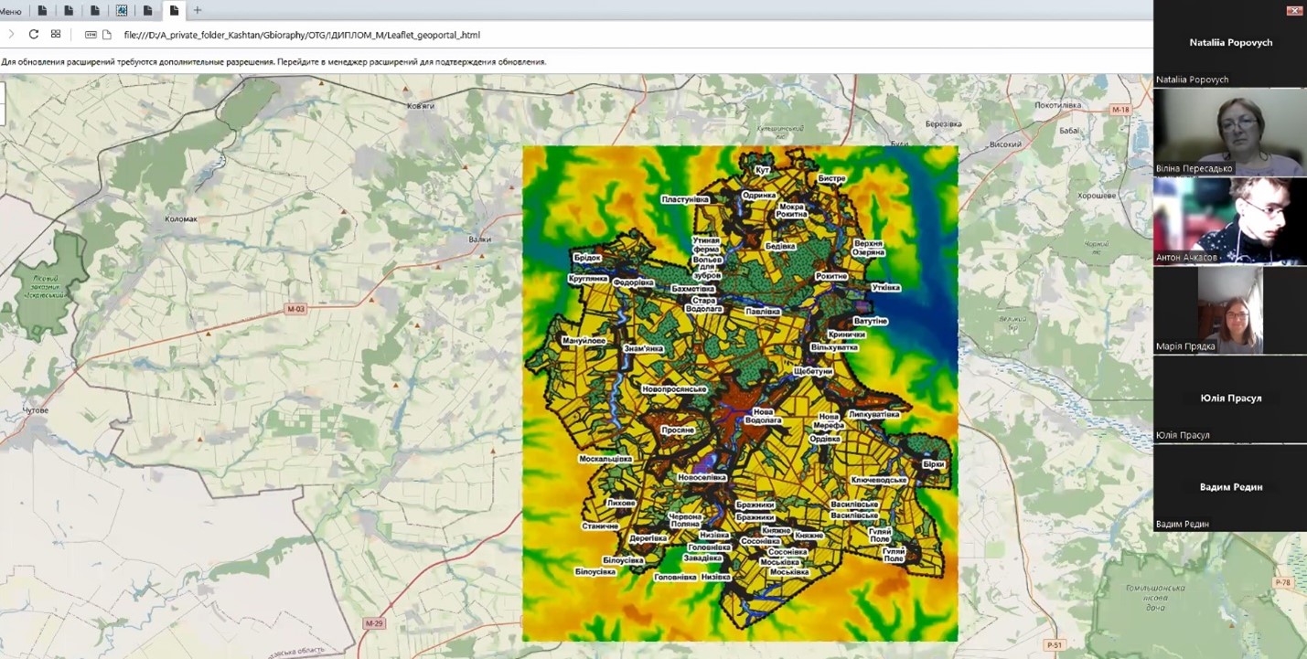 Надзвичайно цікавою для всіх присутніх виявилася практико-орієнтована доповідь Антона АЧКАСОВА на тему «Геоінформаційне забезпечення геопорталів територіальних громад (на прикладі Нововодолазької територіальної громади Харківської області)». Науковий керівник – доцент, к.г.н. Наталія ПОПОВИЧ.