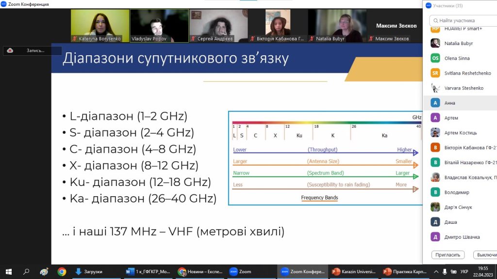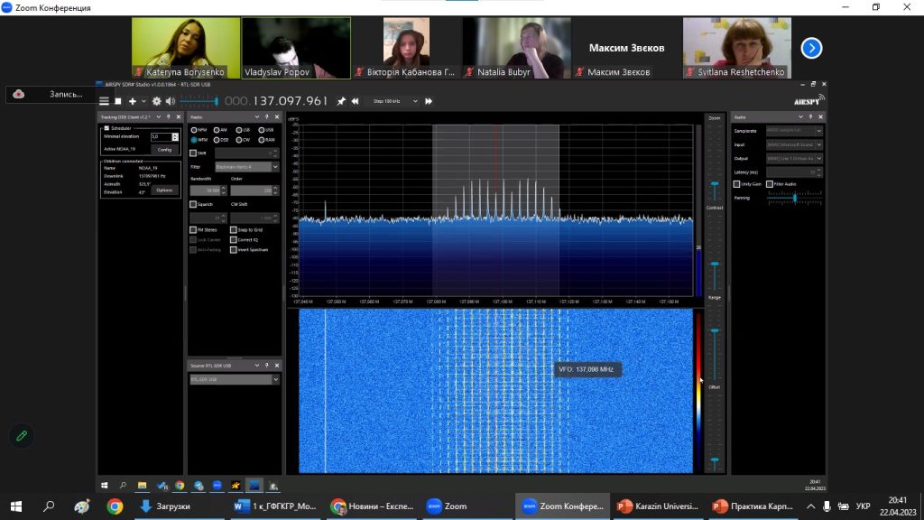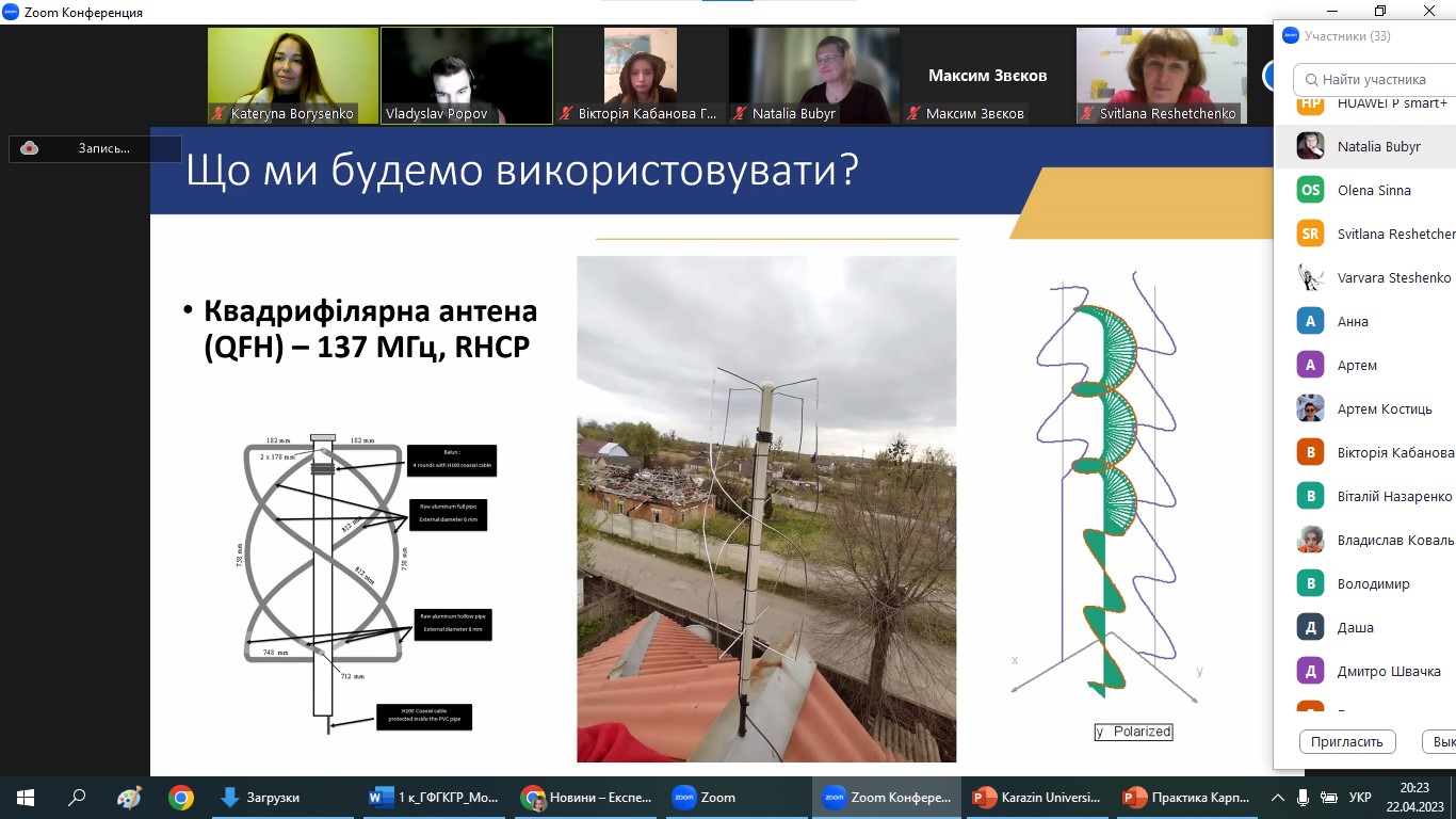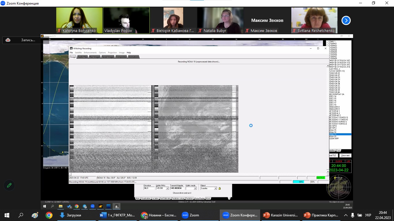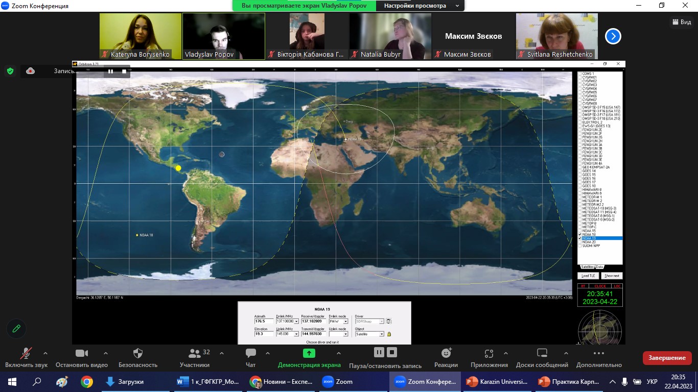 22 квітня 2023, в межах Експедиції вихідного дня, завідувачем навчальної лабораторії ГІС і ДЗЗ, ст. викладачем Владиславом ПОПОВИМ було проведено семінар з основ безпосереднього отримання супутникової географічної інформації. В експедиції взяли участь активні студенти, представники різних освітніх програм (2-4 курсів і 1 курсу магістратури спеціальності 106 Географія та 014.07 Середня освіта (Географія); освітньо-професійних програм: «Фізична географія, моніторинг і кадастр природних ресурсів»; «Картографія, геоінформатика і кадастр»; «Географія, природознавство та спортивно-туристська робота»; «Географія рекреації та туризму»; «Економічна, соціальна географія та регіональний розвиток»; «Географія»; «Картографія, геоінформаційні системи і дистанційне зондування Землі»; «Географія, Людина і природа та туристська робота»), випускники та співробітники кафедри фізичної географії та картографії. А також цього разу відвідали експедицію школярі та їх батьки, вчителі географії закладів загальної середньої освіти, серед яких учні 6-11 класів, НВК №1 та ЗОШ І-ІІІ ст. №9 м. Покровська, Покровської міської ради, Донецької області; КЗ «Кам’яноярузький ліцей» Чугуївської міської ради Харківської області; КЗ “Печенізький ліцей ім. Г. Семирадського” Печенізької селищної ради; Харківська гімназія 169; Харківська ЗОШ І-ІІІ ст. № 140 Харківської міської ради Харківської області та інші. Доцент Катерина БОРИСЕНКО яскраво презентувала абітурієнтам Університет та кафедру на початку заходу, тому щиро сподіваємося, що присутні учні в майбутньому поповнять ряди нашої геородини!