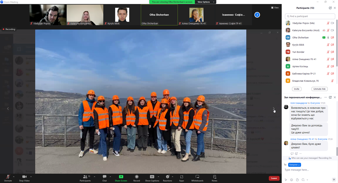 На завершення «експедиції» представники Української спілки молодих географів Ольга Щербань та Артем Костиць розповіли та проілюстрували подорож нещодавню подорож спілки до Полтавського ГОКу та м. Горішні Плавні, що зайвий раз доводить незламну жагу нашого студентства до подорожей і пізнання світу!