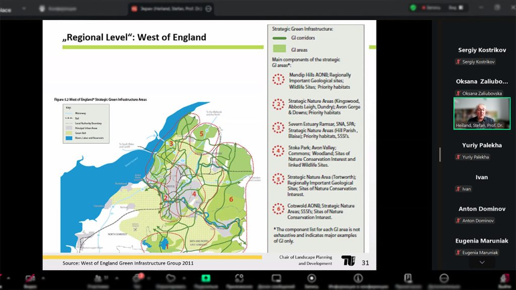 Друга частина лекції була присвячена аналітичному огляду цих концепцій та розкриттю можливостей їх використання в екологічному плануванні на різних просторових рівнях (зокрема у Великій Британії та Німеччині).