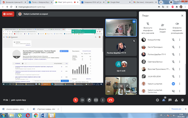 Учасники онлайн майстер-класу дізналися з доповіді Вадима Едуардовича, про таке: як обрати тему майбутньої кваліфікаційної роботи; чому публікувати наукові статті, тези, брати участь у конференціях є важливим етапом для учасників освітнього процесу; принципи наукометрії та роботи з наукометричними базами Scopus та WoS, дізналися про цитування наукових робіт та формування рейтингу за цитуванням; переваги іноземних стажувань та навчання у літніх наукових школах за кордоном, їх практичне значення та деталі організації у межах даних ОПП; секрети грамотного підходу до вчительської справи; спогади про навчання на факультеті В. Е. ЛУНЯЧЕКА та ще багато цікавих фактів.