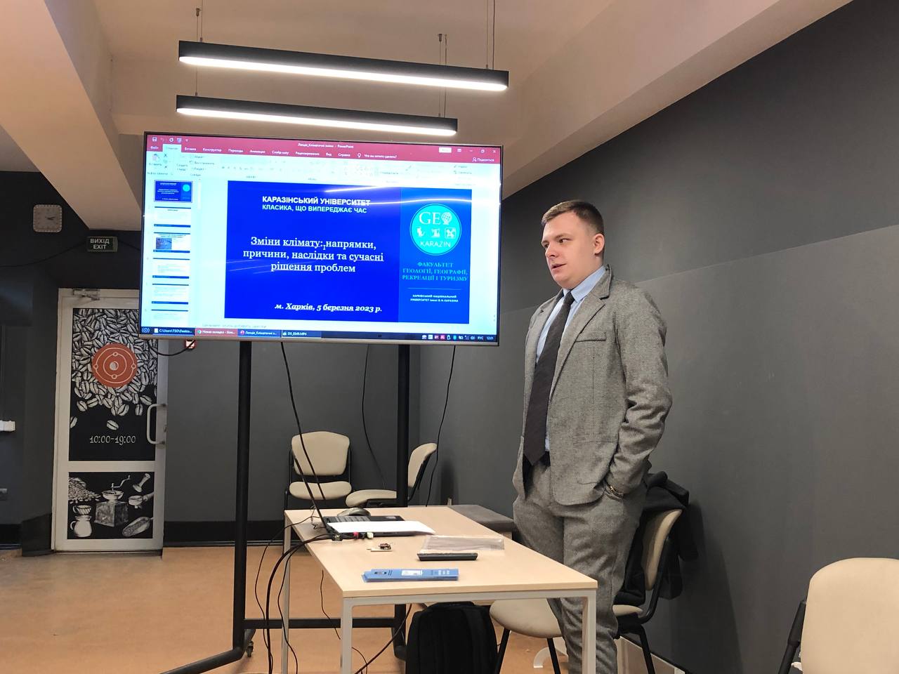 05 березня була проведена дуже пізнавальна лекція «ЗМІНИ КЛІМАТУ: ПРИЧИНИ, НАСЛІДКИ ТА СУЧАСНІ РІШЕННЯ ПРОБЛЕМ». Спікери – ДМІТРІЄВ Святослав Станіславович, аспірант кафедри фізичної географії та картографії, БОРИСЕНКО Катерина Борисівна, к. пед. н., доцент кафедри фізичної географії та картографії.