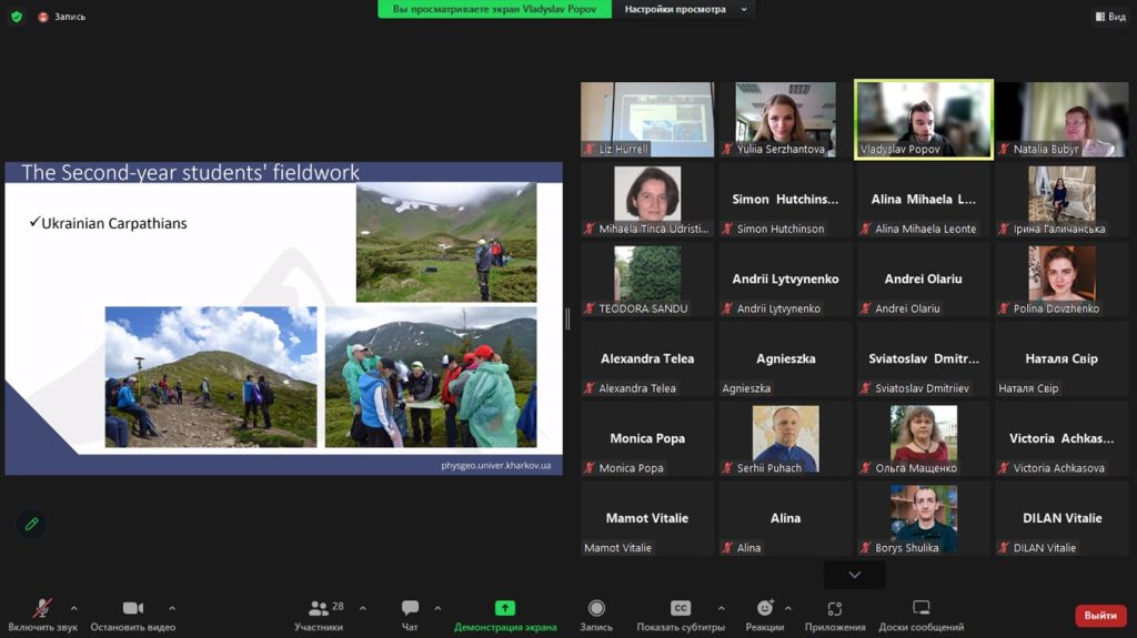 Загалом, у Літній школі взяли участь більше 40 очних учасників, а також проводилася трансляція для онлайн-учасників, серед яких були співробітники і студенти нашої кафедри. З цікавими презентаціями на цьому заході виступили науковці з більше ніж десяти британських, українських, чеських, румунських і словацьких університетів. Зокрема, доцент Катерина БОРИСЕНКО і завідувач навчальної лабораторії ГІС і ДЗЗ Владислав ПОПОВ виступили з доповіддю, присвяченою особливістям проведення навчальних польових практик на нашій кафедрі, зокрема – в дистанційному режимі.