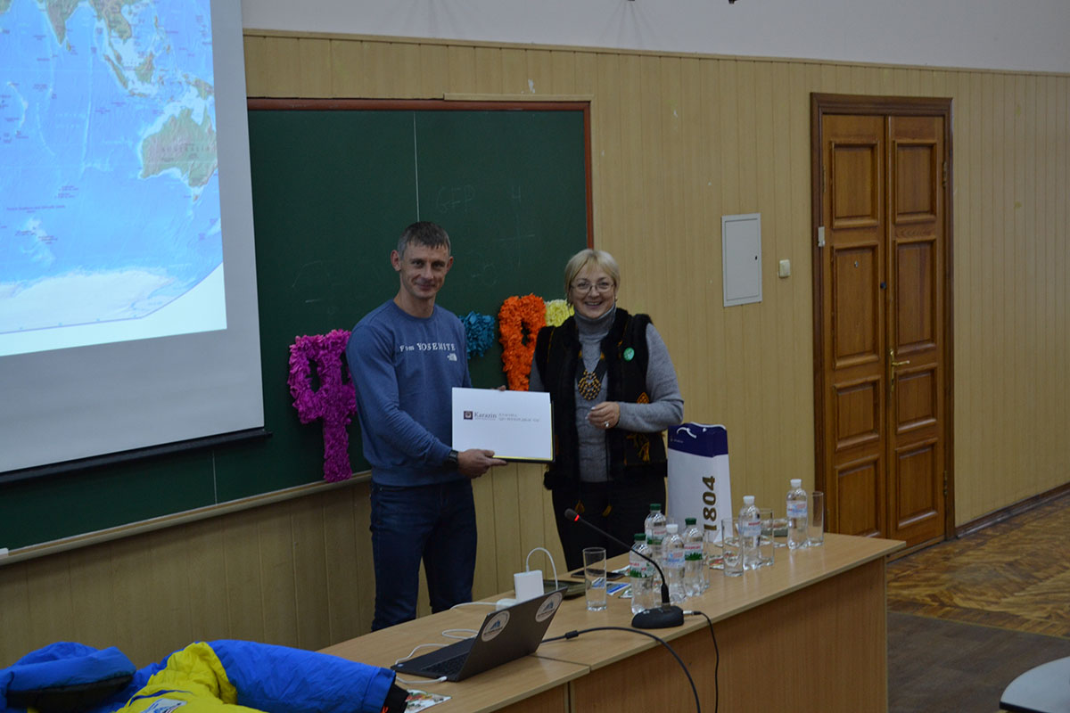 “Ви можете все! Весь світ відкритий перед Вами!” – надихаючий меседж під час зустрічі в Каразінському університеті від випускника кафедри фізичної географії та картографії Валентина Сипавіна, експерта з високогірних сходжень, альпініста, льодолаза та гірського гіда, учасника та організатора експедицій і сходжень на найвищі вершини світу!