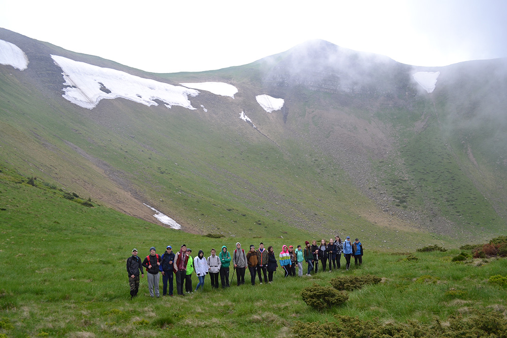Потім – три дні високогір’я, три дні найвищих вершин Українських Карпат, три дні неймовірної краси і неймовірного фізичного напруження. За ці три дні студентам вдалося зійти на чотири «двотисячники», яких, як відомо, усього шість. Усі вони велично стоять у Чорногірському масиві. 6 червня студенти вперше за останні роки практики відвідали г. Піп Іван Чорногірський (2028 м.), що відома руїнами колишньої польської обсерваторії, яку часто називають «Білий Слон». Зараз активно ведеться її відновлення. Слід відзначити, що студенти кафедри відвідали вершину Попа Івана у символічний рік – у 2018 р. виповнюється 100 років з моменту відкриття обсерваторії. Сходження здійснювалось з півдня, зі сторони г. Васкул, схил тут крутий, вкритий курумами. Але це не заважило географам-практикантам продовжувати активний збір польового матеріалу, виконувати інструментальні виміри. 7 червня – ще більш видовищний маршрут до «серця» Чорногори, до найвисокогірнішого озера країни Бребенескул, навколо якого студенти записали собі до активу ще два «двотисячники», г. Ребра (2001 м.) та власне вершину Бребенескул (2036 м.). На озері група заклала черговий гідрологічний пост. 8 червня – найвища точка України, гора Говерла (2061 м.), сходження здійснено традиційно, з КПП «Козьмещик».