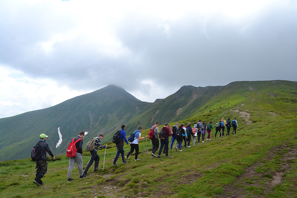 4 червня – перший вихід до гір, до хребта Маришевська (Чорногірський масив) зі сходженням на її найвищу точку, г. Маришевську Велику (1567 м.). Навчальний сенс даного навчально-наукового маршруту – вивчення ландшафтної місцевості давньольодовикового акумулятивного середньогір’я, характеру рослинної асоціації. Студенти маршрутом виконали барометричне нівелювання, дослідили несприятливі фізико-географічні процеси на місцевості (буреломи, вітровали), інструментально визначили характеристики схилового древостану за допомогою лазерного дальноміру, тощо. Практиканти поступово звикають до значних навантажень у горах.