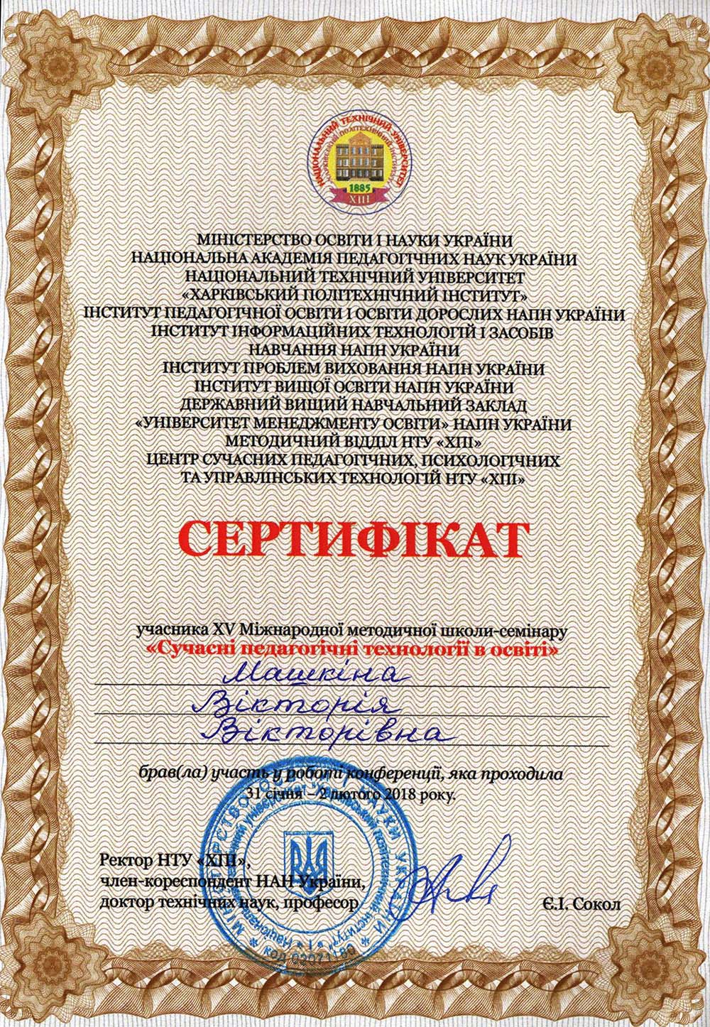 31 січня – 2 лютого 2018 року у Національному технічному університеті «Харківський політехнічний інститут» проводилась ХV Міжнародна методична школа-семінар «Сучасні педагогічні технології в освіті».